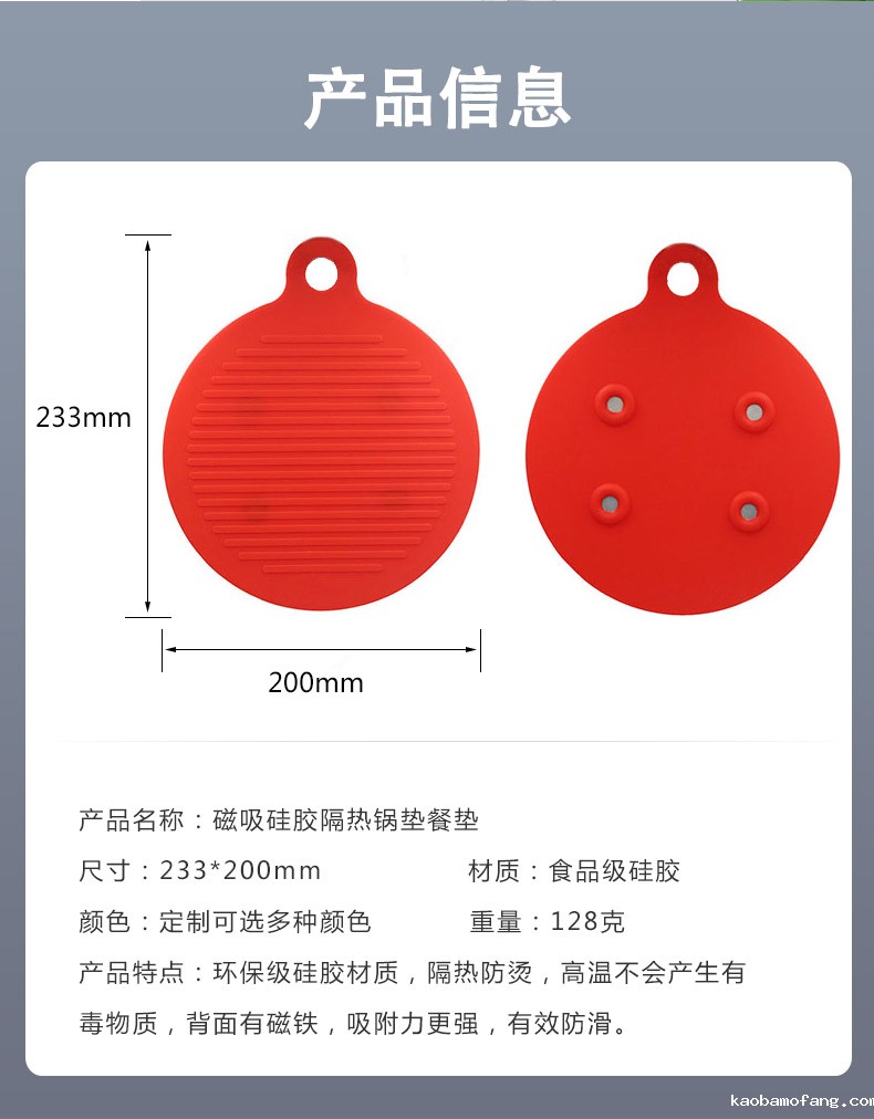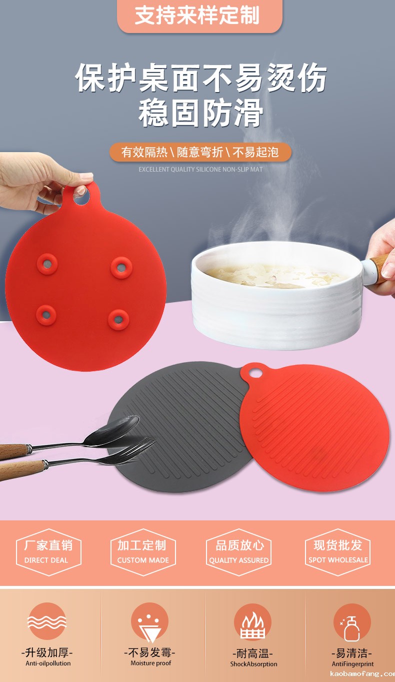 【简介】圆形磁铁硅胶隔热餐垫 防烫垫 厨房防水防滑锅垫 硅胶餐垫