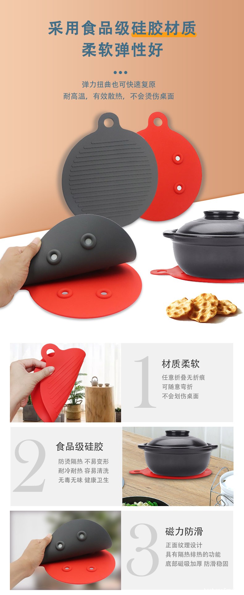 【材质】食品级硅胶+耐高温强磁