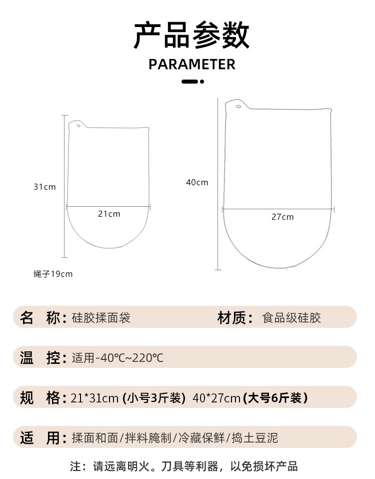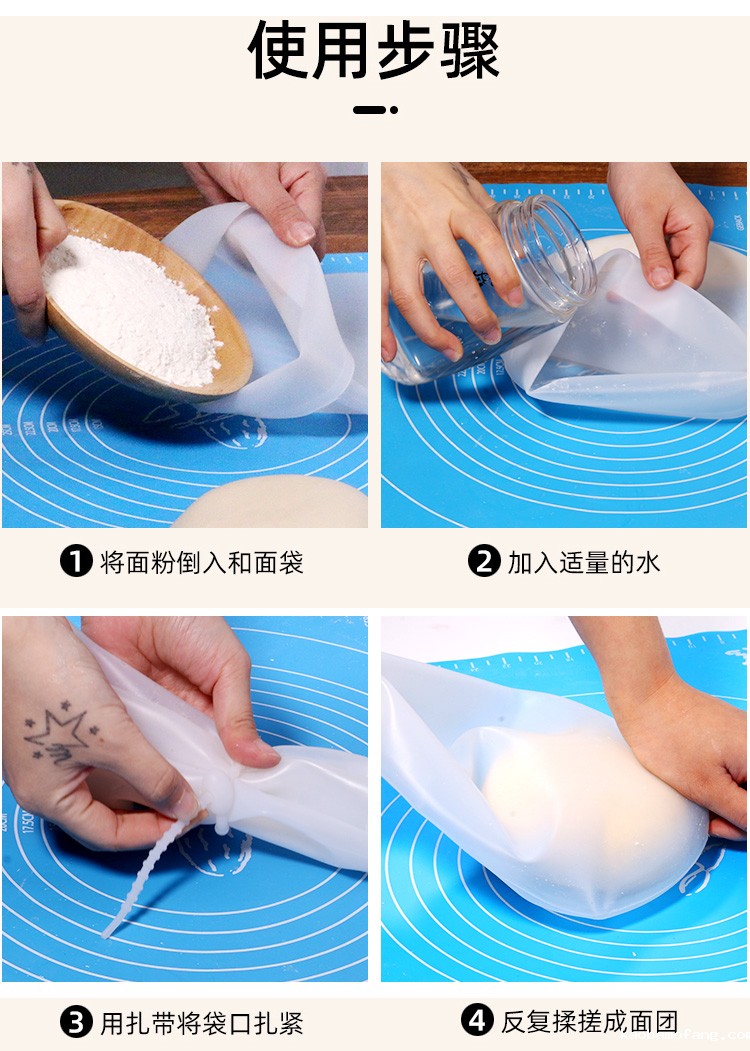 4.作为不粘的揉面垫、推面垫;放烤箱里用的不粘烘焙垫,可作临时的防烫和防粘手套、热水袋;也可作为旅行用食品袋、多用途袋等。