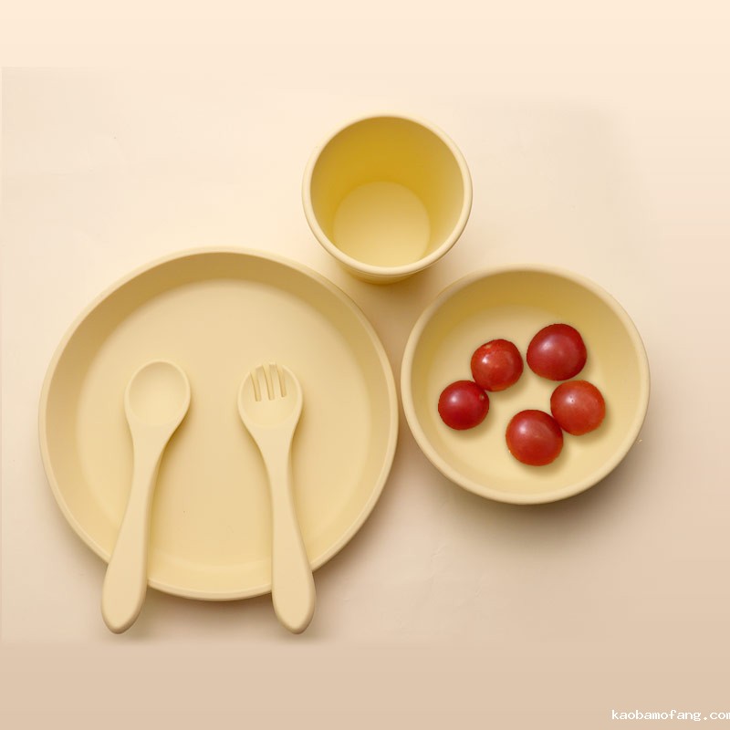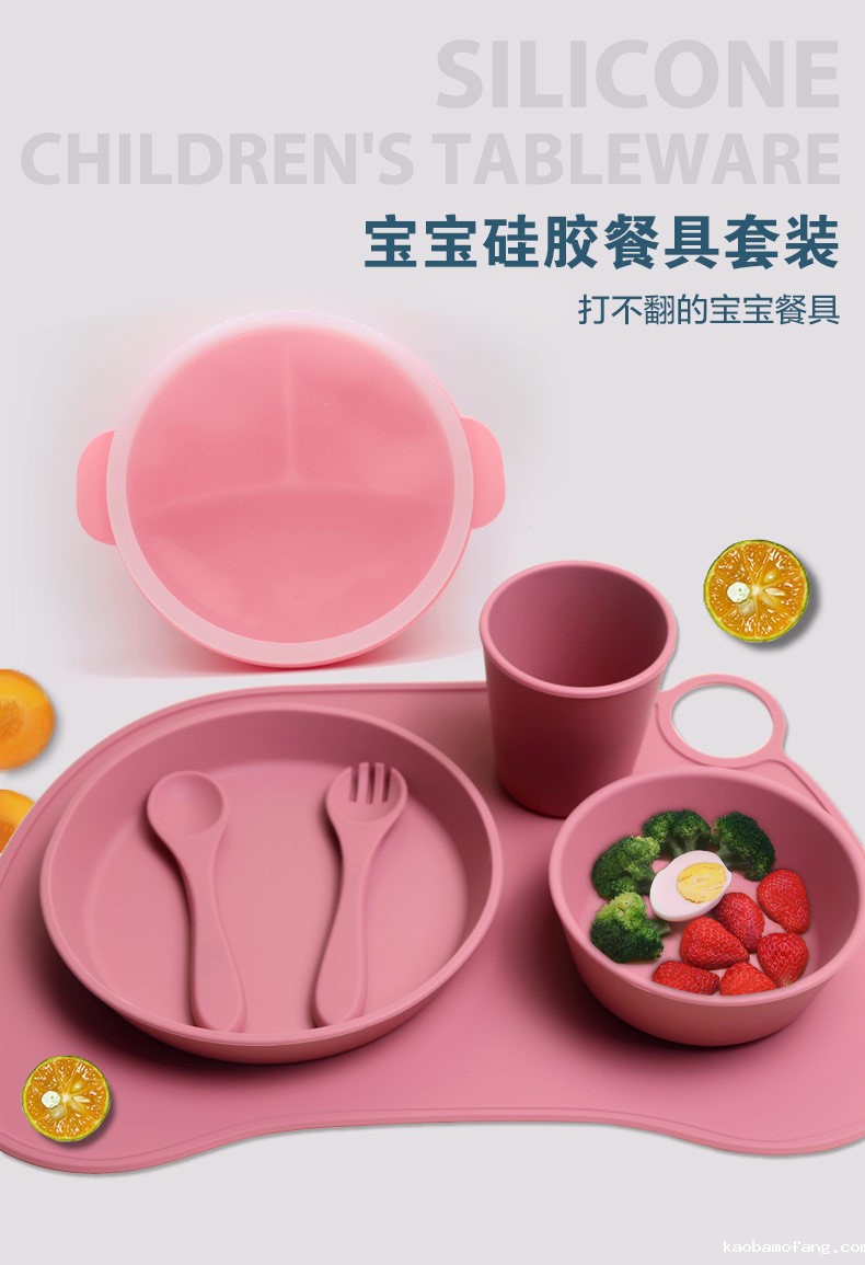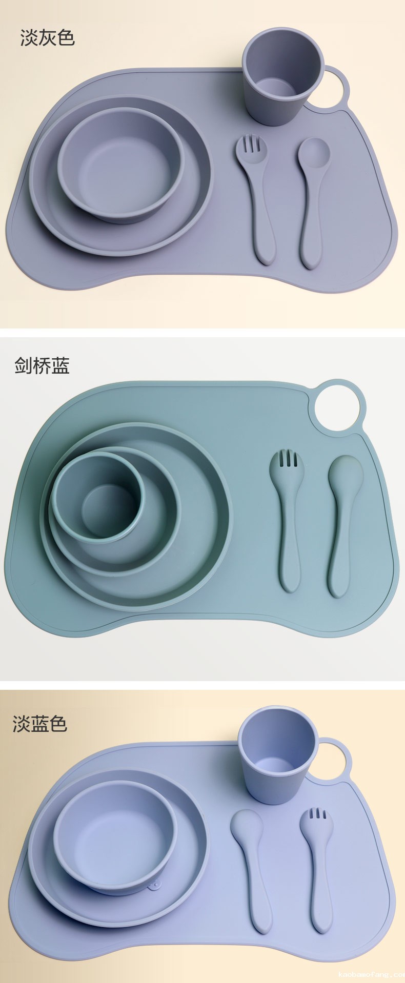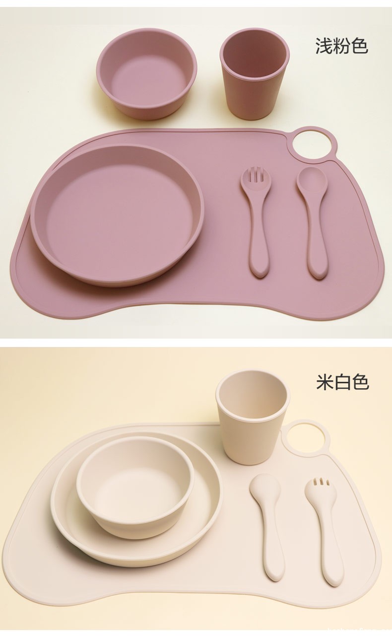 批发食品级硅胶儿童餐具宝宝喂食硅胶餐盘碗杯子餐垫 套装