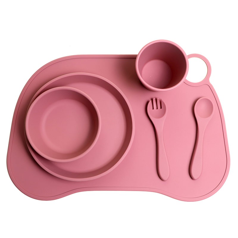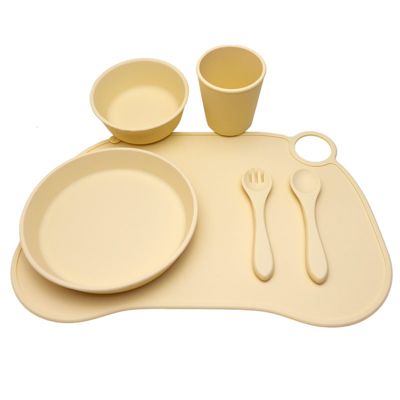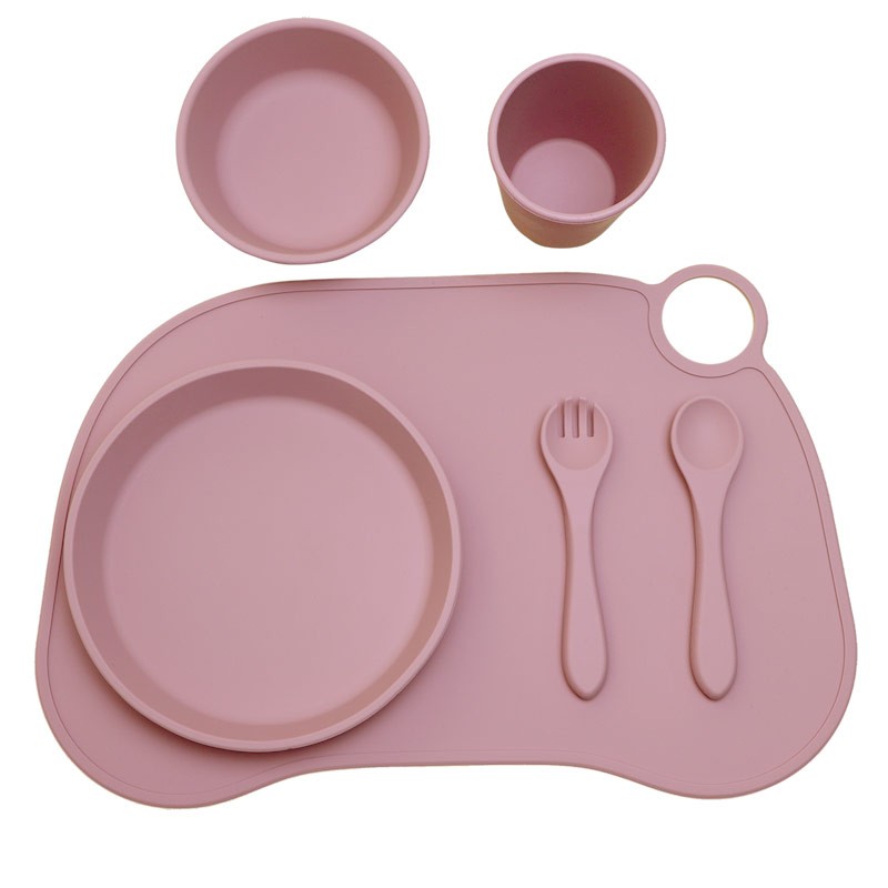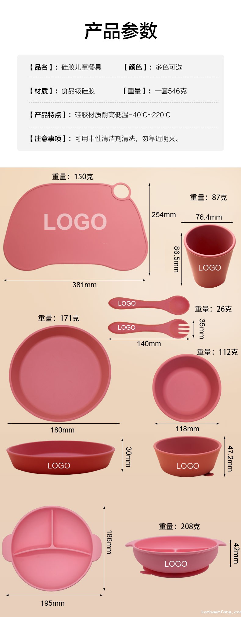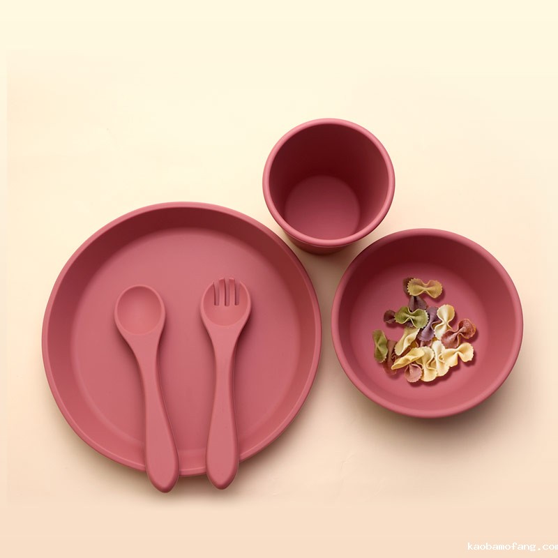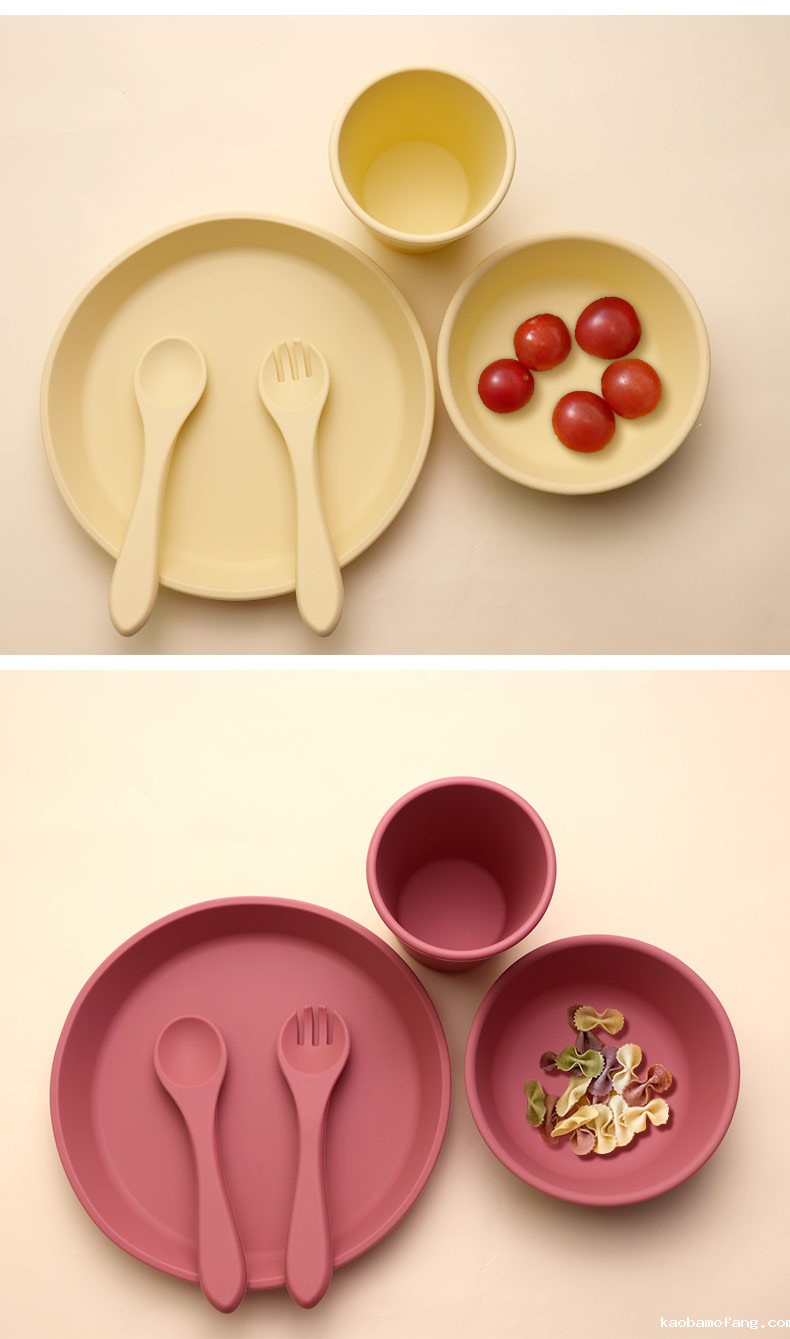 批发食品级硅胶儿童餐具宝宝喂食硅胶餐盘碗杯子餐垫 套装