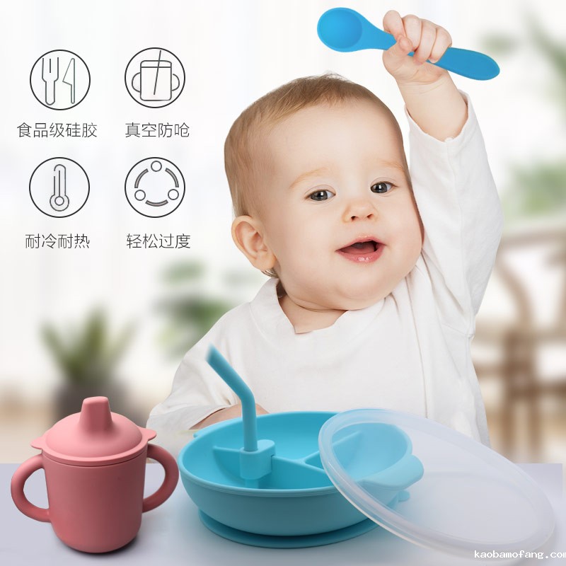 硅胶儿童餐具套装 宝宝硅胶餐盘 一体式儿童餐具婴幼儿辅食吸盘碗