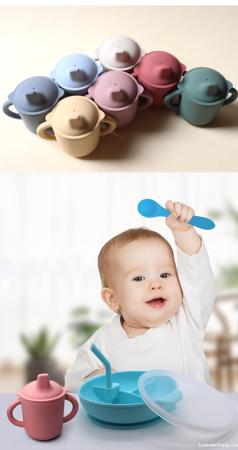 宝宝学饮杯一体式全硅胶食品级手持吸管杯婴儿专用喝水杯