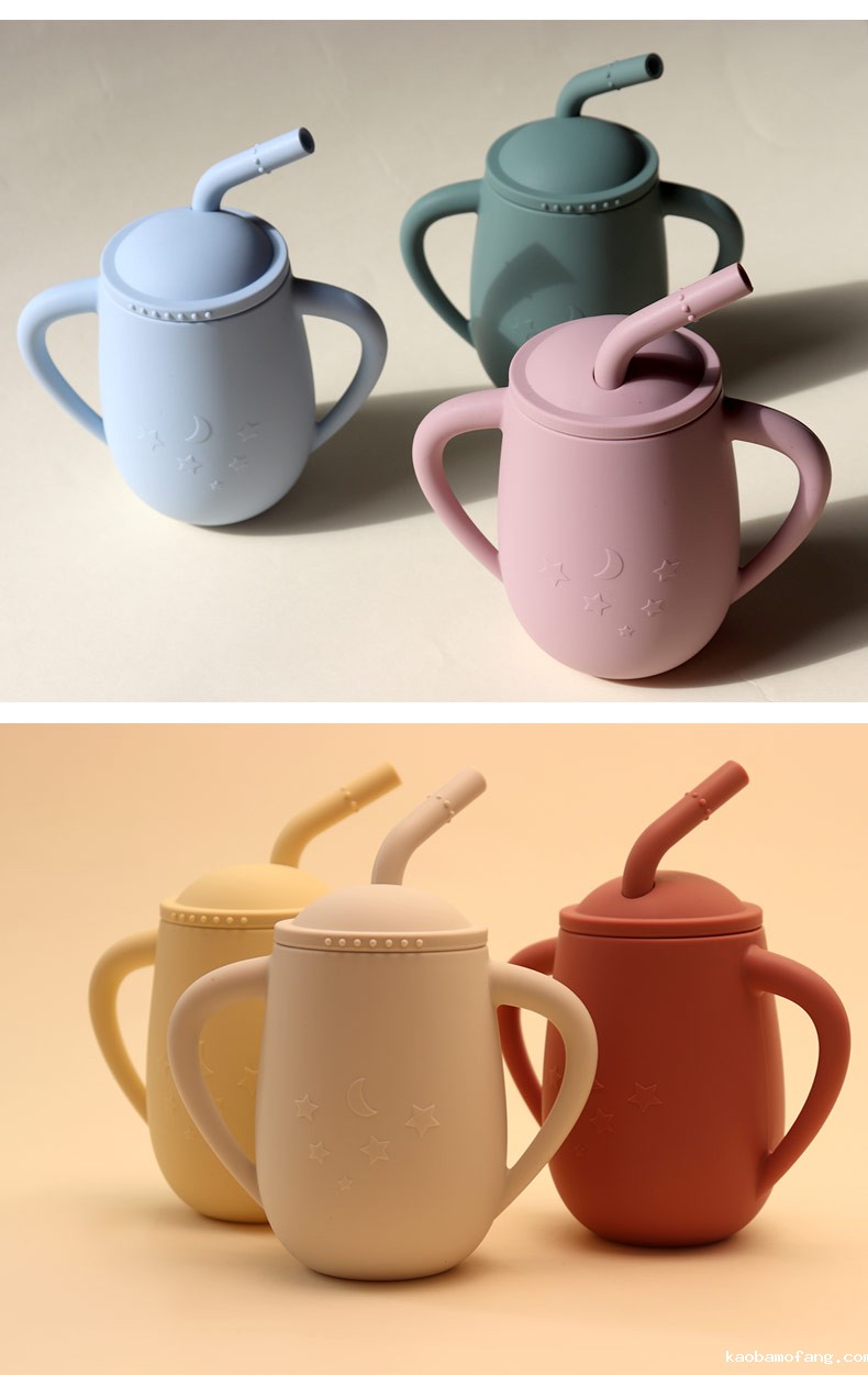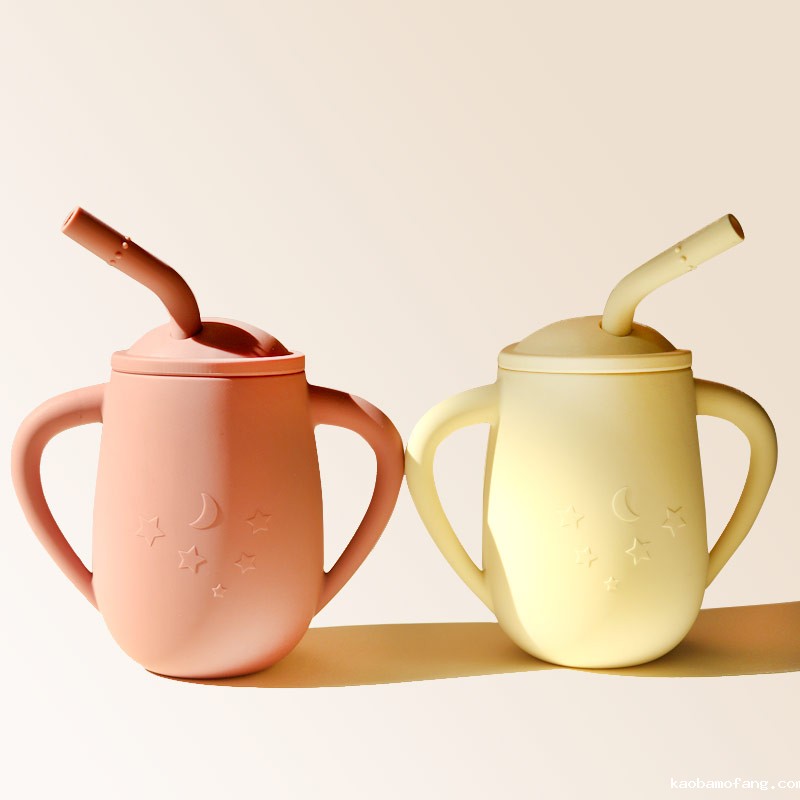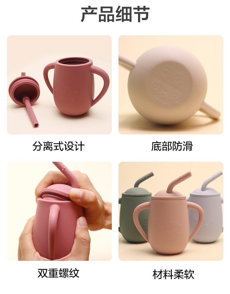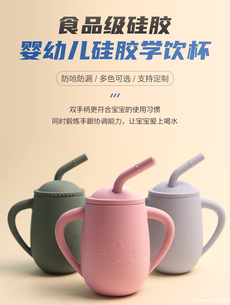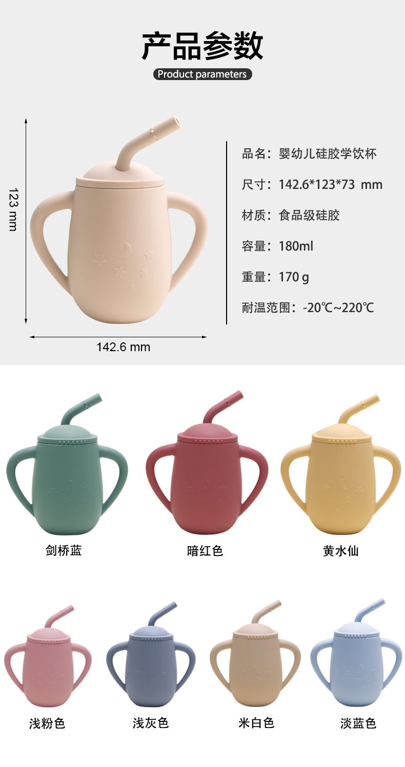 婴幼儿硅胶学饮杯 带吸管饮水杯