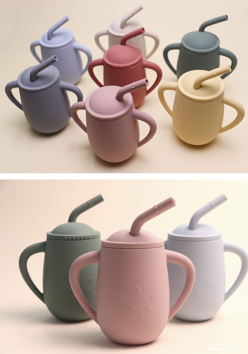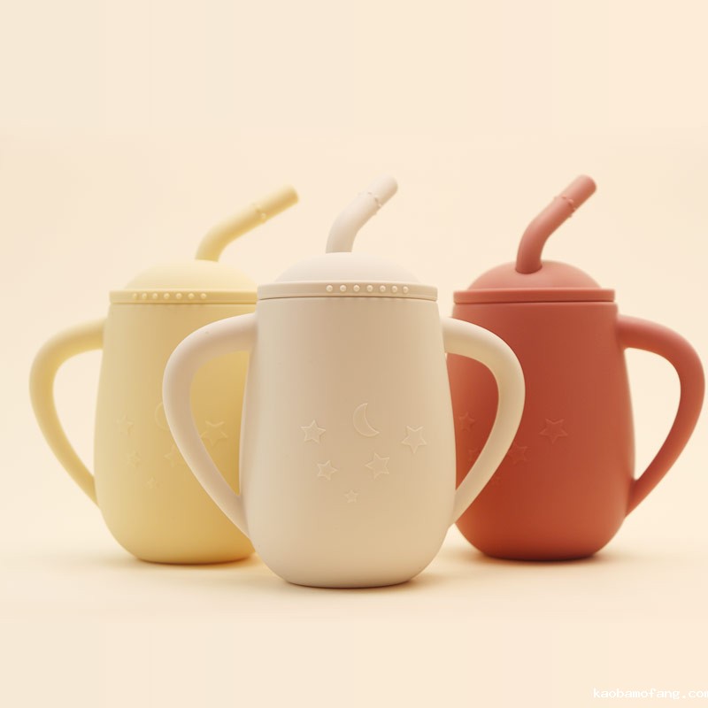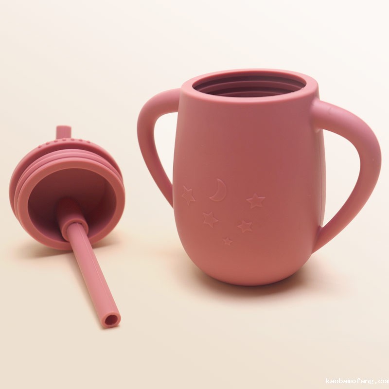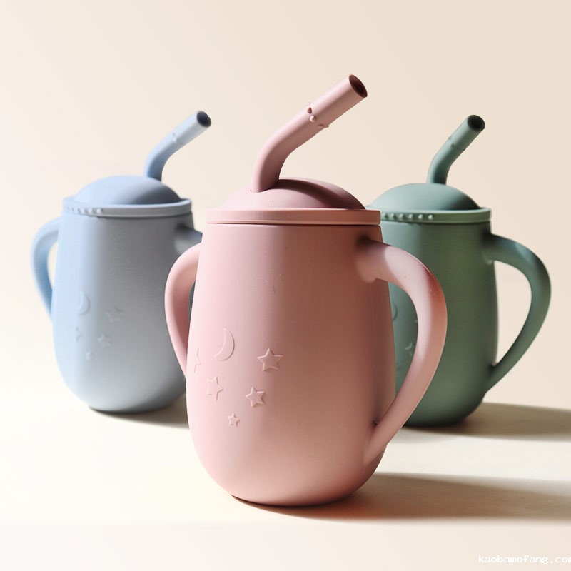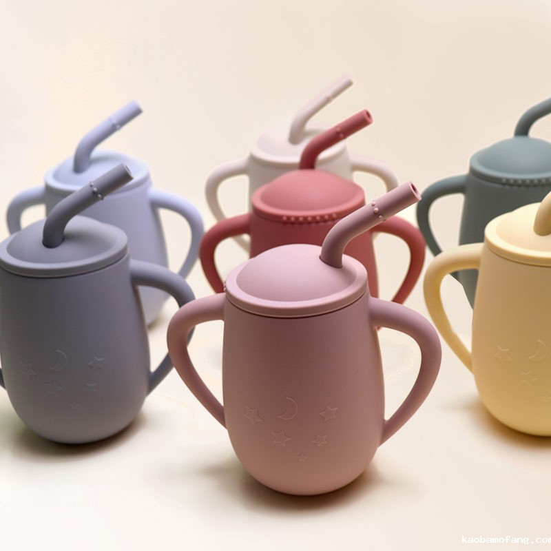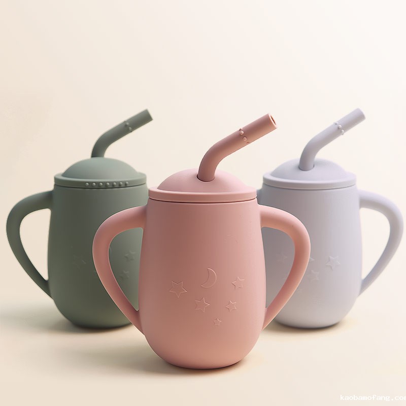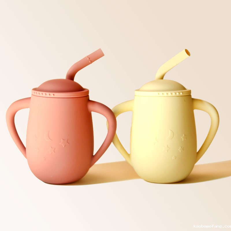 婴幼儿硅胶学饮杯 带吸管饮水杯