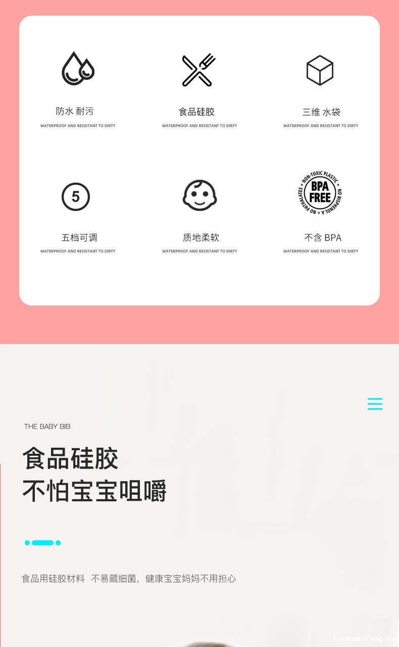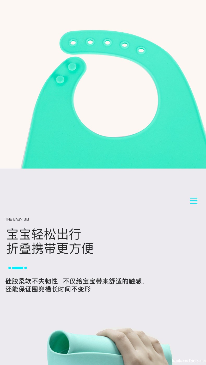 科泰利所生产的硅胶围嘴兜,选用食品级环保原材料制作,材质可以信赖,它由科泰利硅胶制品厂家经过200多度高温加工成型,耐温防水防油,清洁方便,水冲即可,可以反复使用。而且硅胶围兜现在普遍采用3D立体设计,凹槽可以轻松兜住食物,这样的设计就是在存放的时候比棉质占空间。此外硅胶除了作为围嘴兜也一样可以做其他婴童硅胶制品。