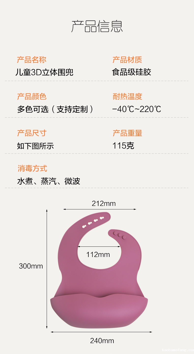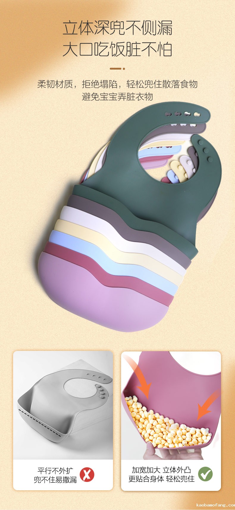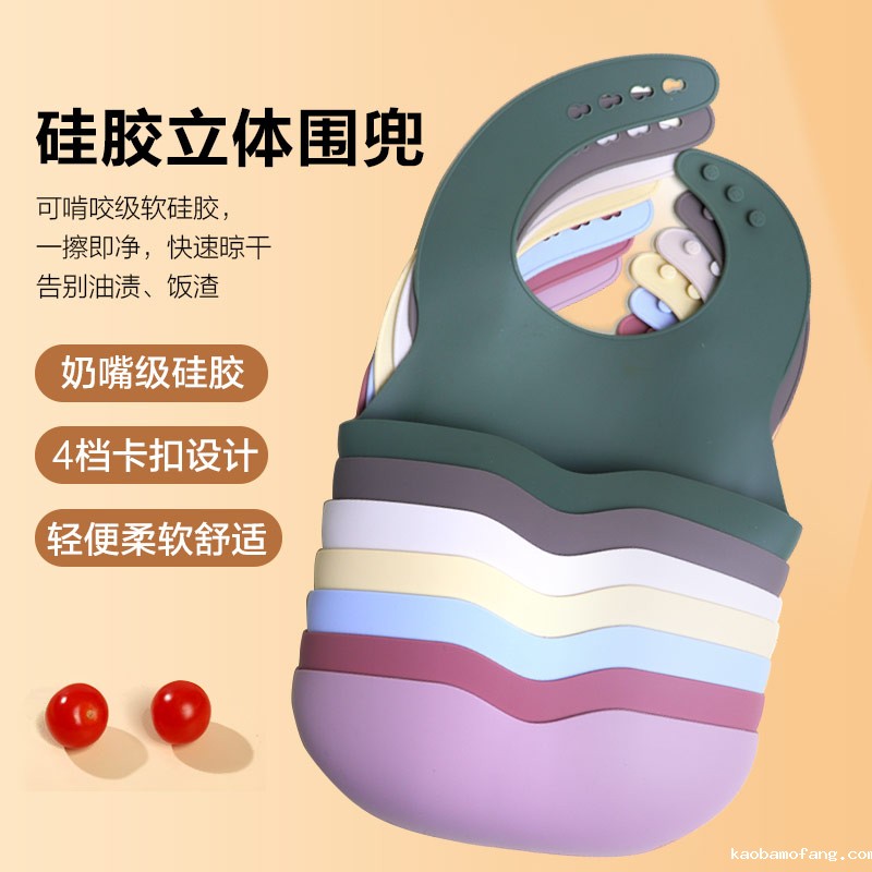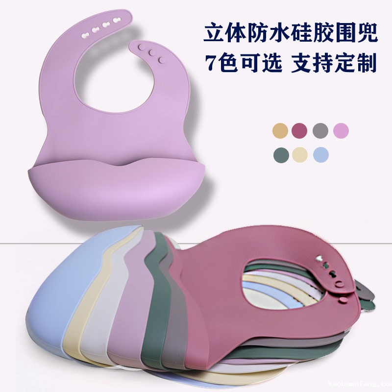 硅胶婴儿宝宝吃饭围兜纯色立体儿童饭兜