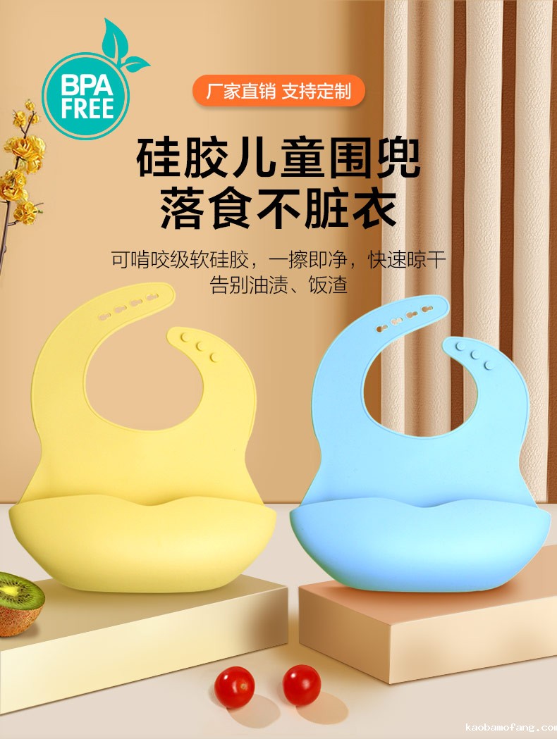 宝宝吃饭饭兜,儿童硅胶口水围兜定制代加工厂