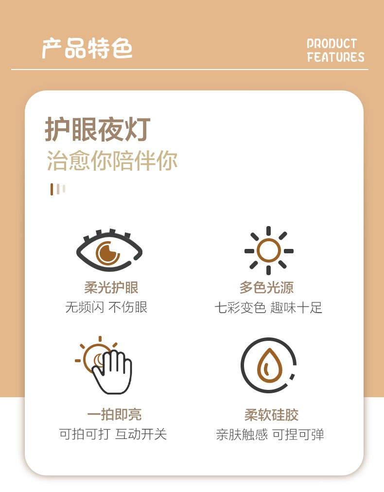 小鹿硅胶小夜灯 拍拍感应灯喂奶起夜灯