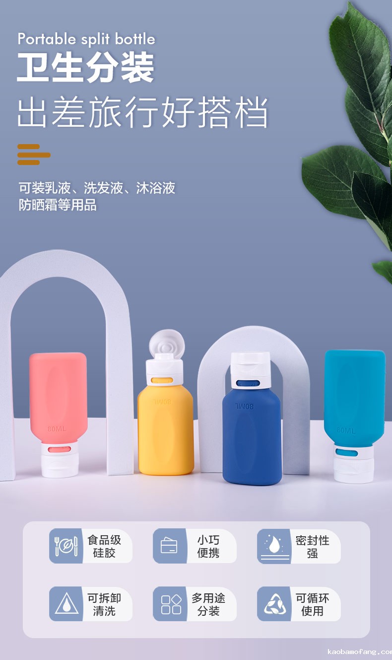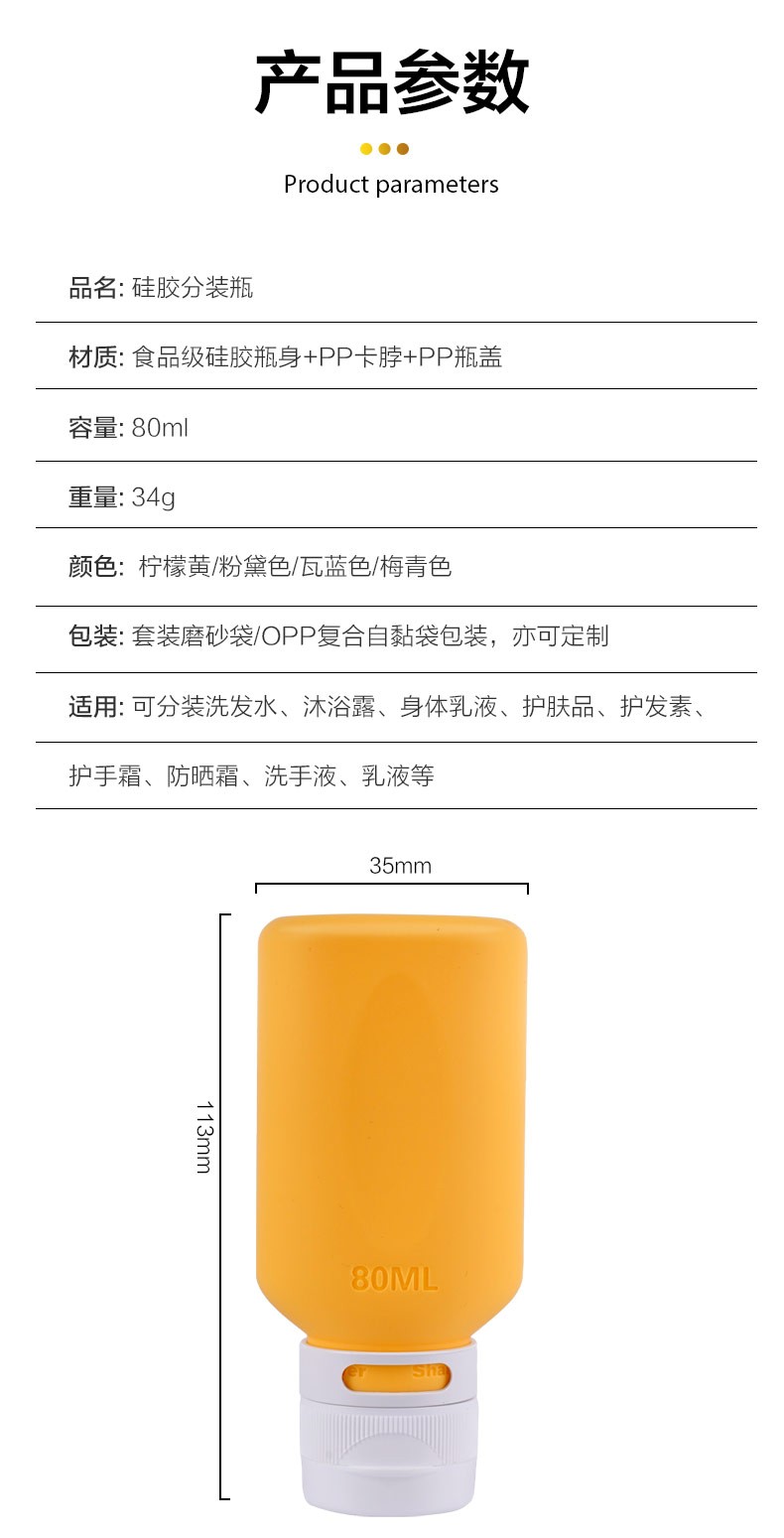 硅胶乳液分装瓶旅行便携包装80ml挤压式乳液化妆品收纳瓶