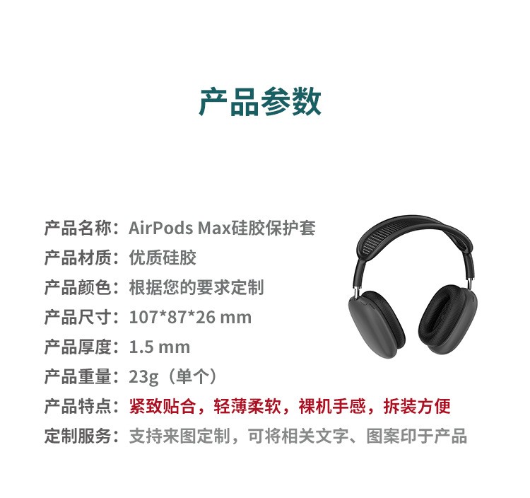 产品名称: | 适合苹果AirPods Max蓝牙耳机硅胶保护套 |