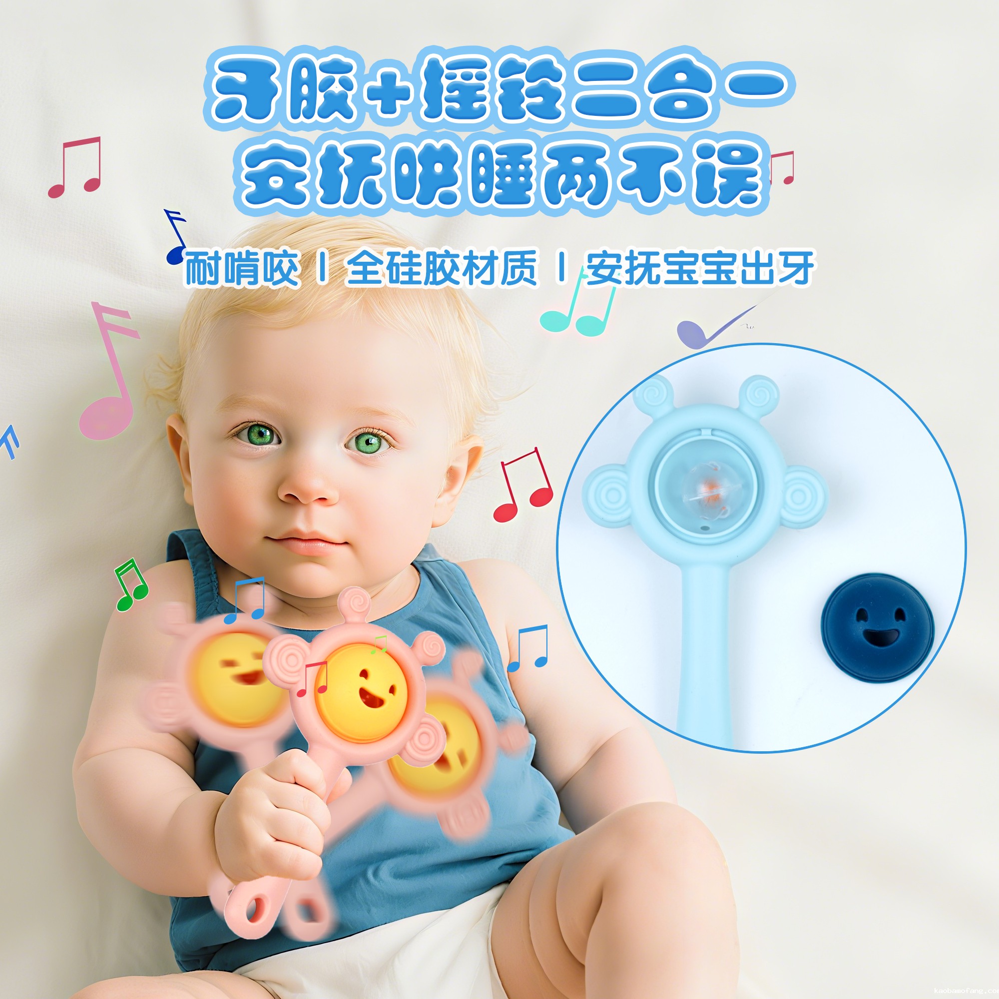 亚马逊新生婴儿硅胶牙胶防吃手圆环食品级可握咬玩具手环母婴牙胶