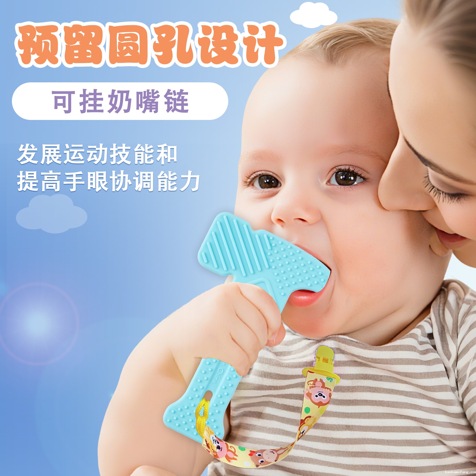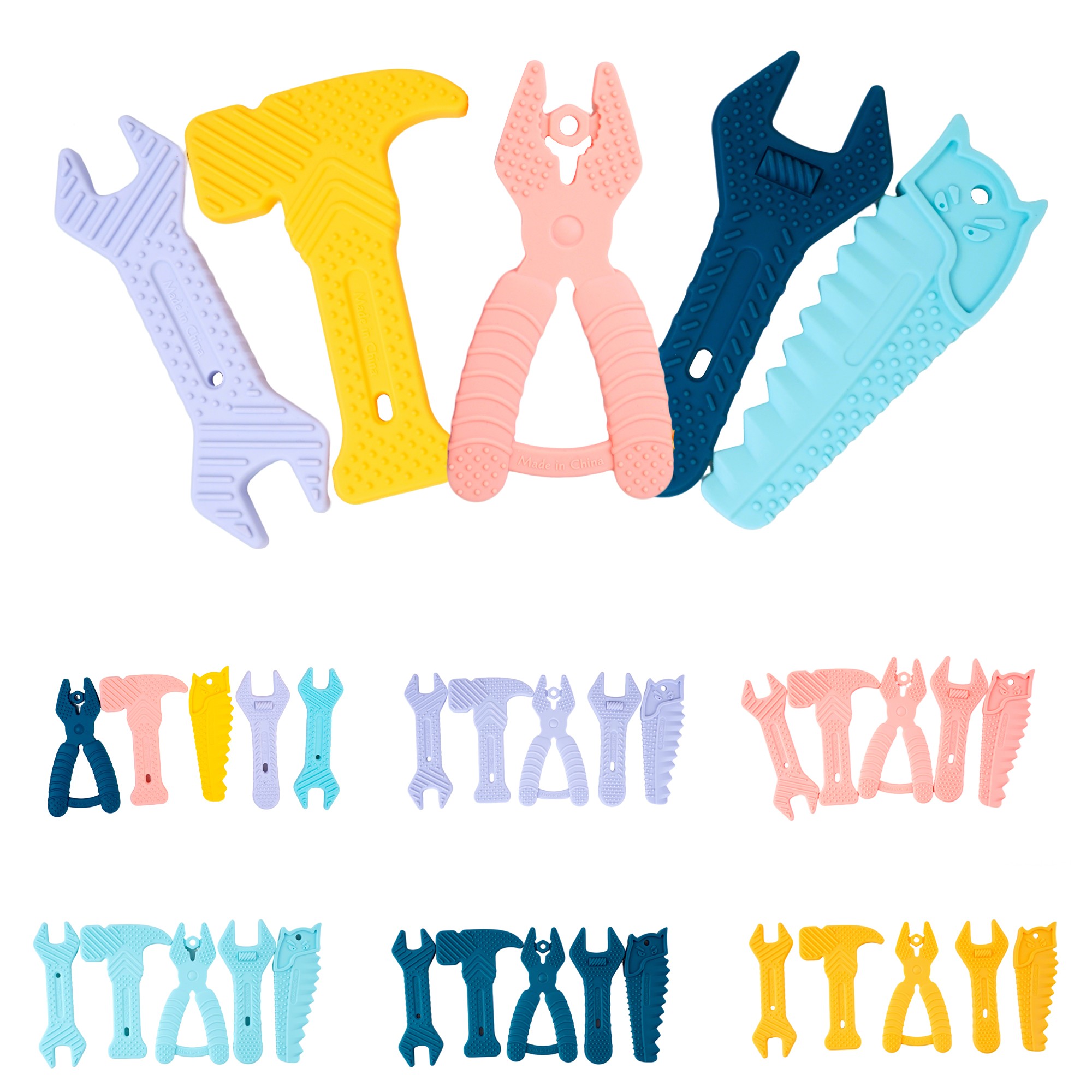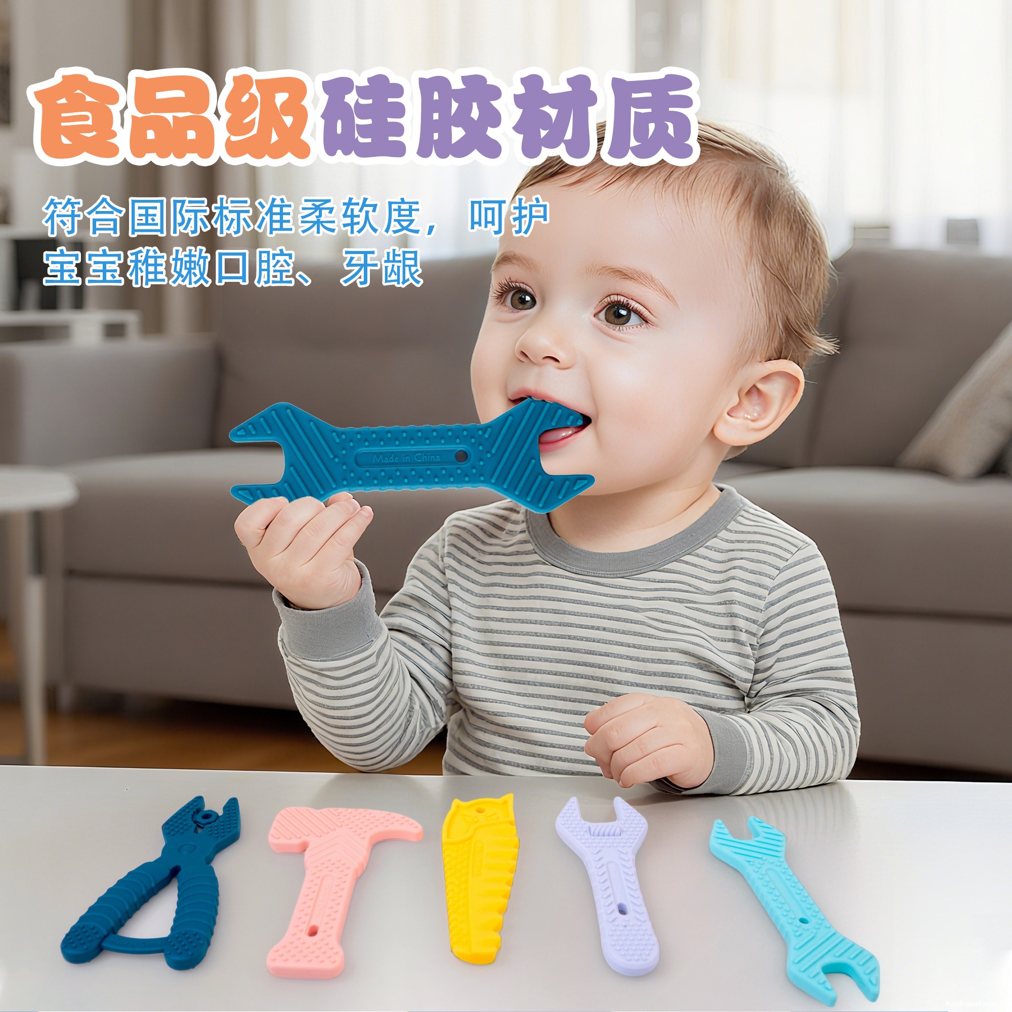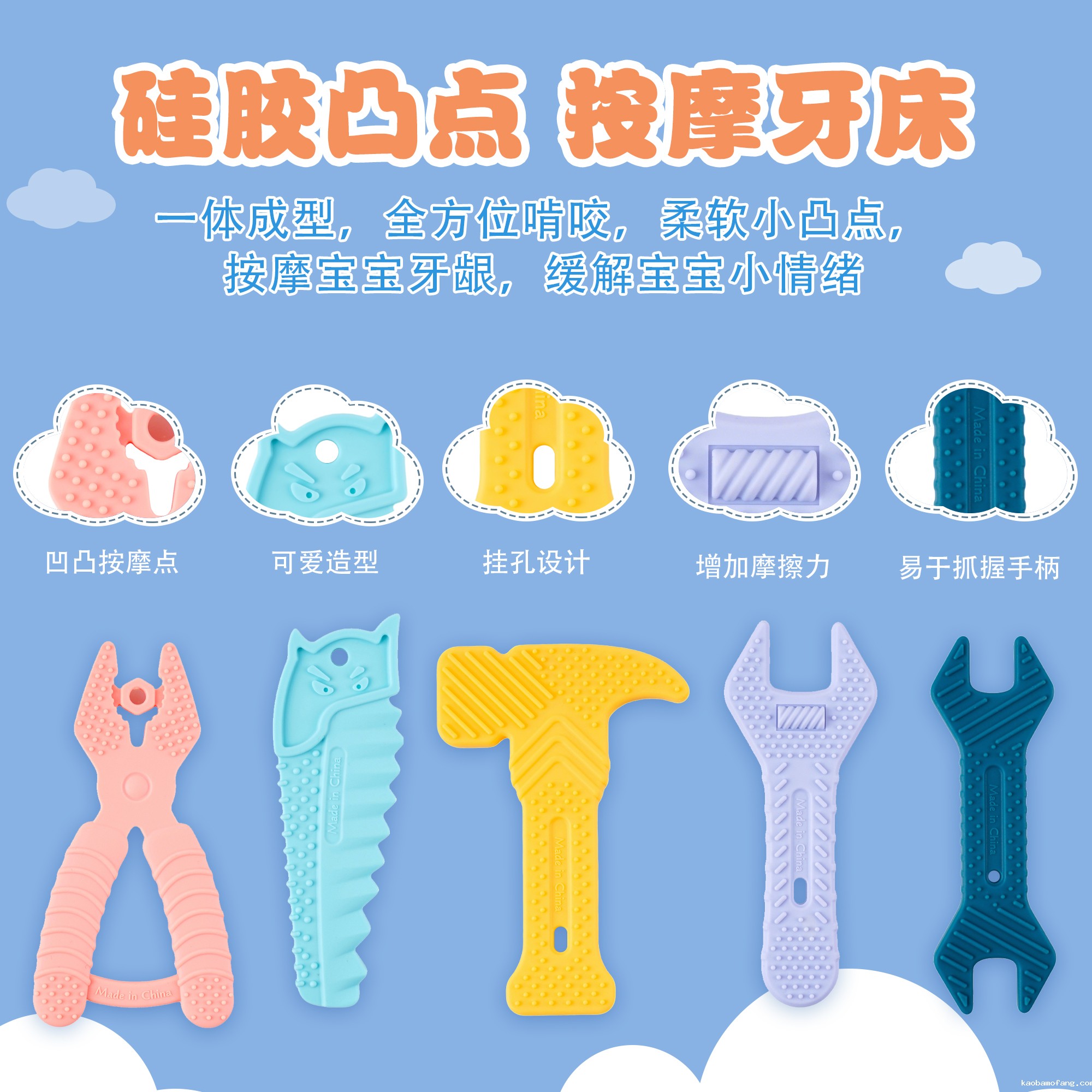 亚马逊锤子扳手牙胶婴儿硅胶磨牙棒宝宝卡通儿童防咬手牙胶5件套
