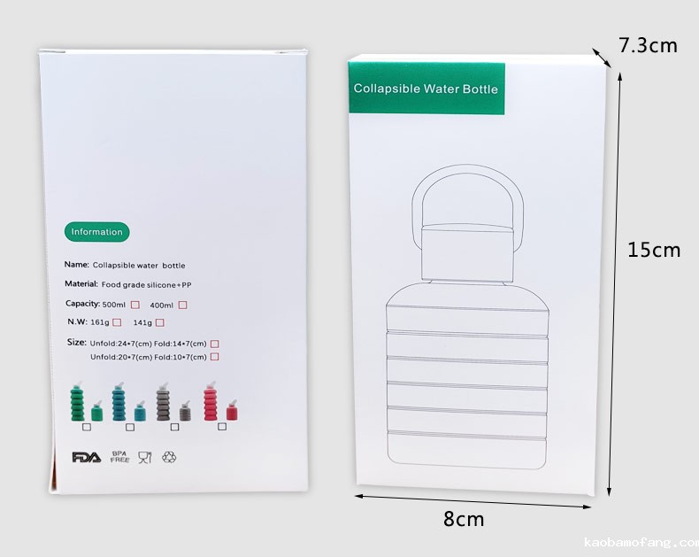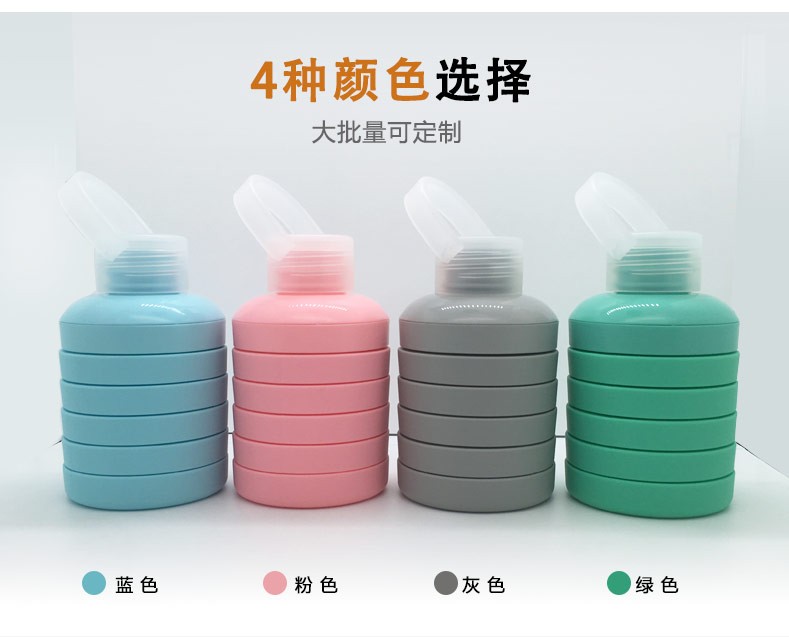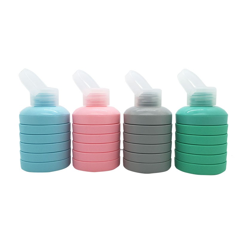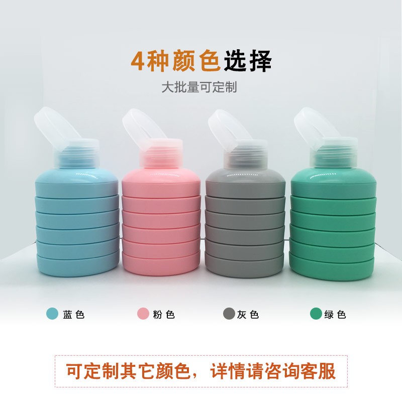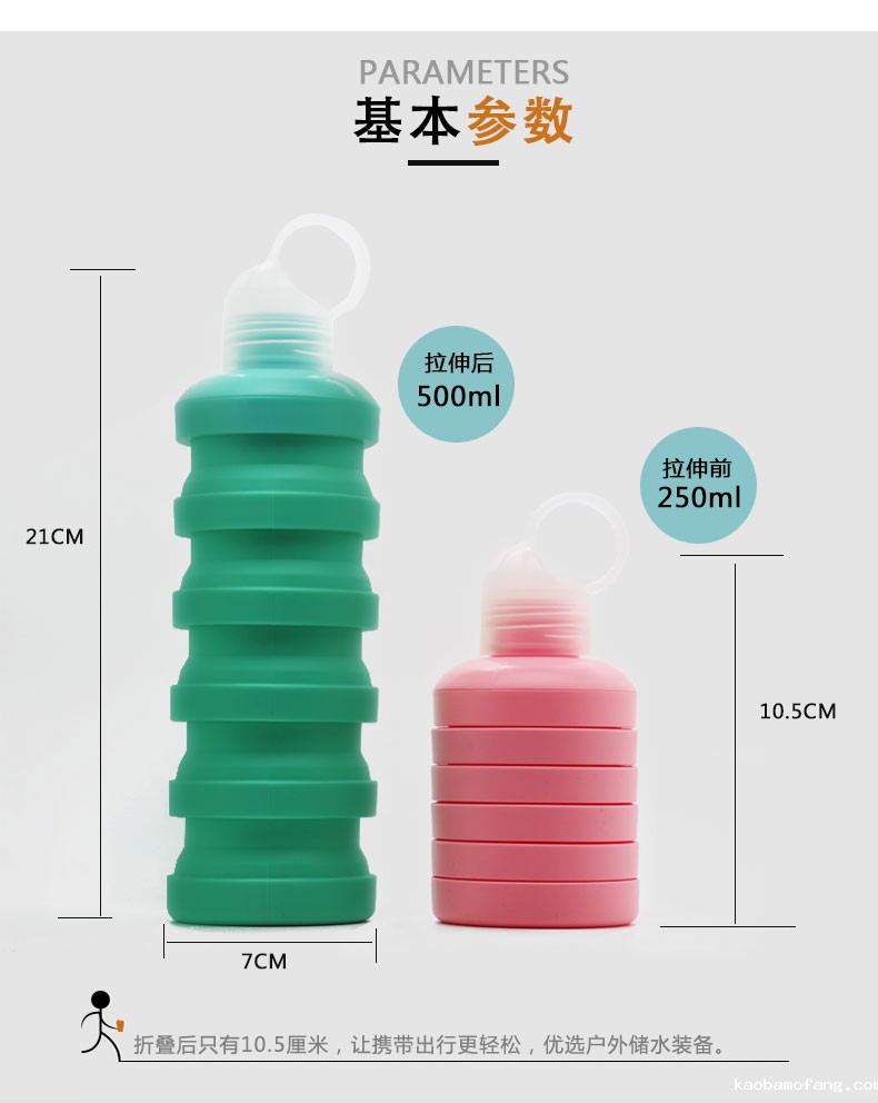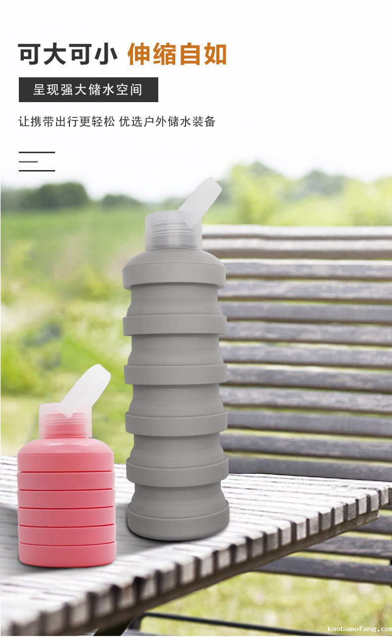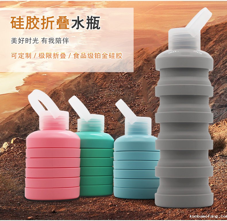 便携式硅胶折叠水瓶采用食品级硅胶材质,符合食品级标准,符合相关质检标准,这款运动折叠水瓶是本公司2021年最新研发生产的硅胶制品,颜色目前只生产了4种,分别为灰色,绿色,蓝色,粉红色,瓶盖为白透明色,也可以根据要求来定制各种材质或者是不同形状的瓶盖颜色或者是样式。可装热水,方便旅行携带,具有耐摔,耐高温,柔软等特点。